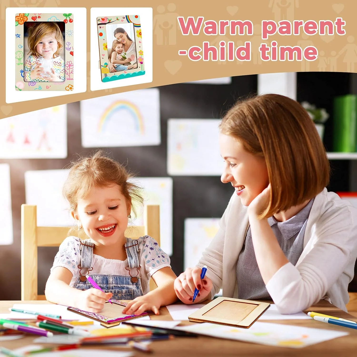 - Complete 32-Piece Set: Includes 7.9” x 5.9” wooden frames, 12 colored markers, and 4 sheets of adhesive crystal diamond stickers